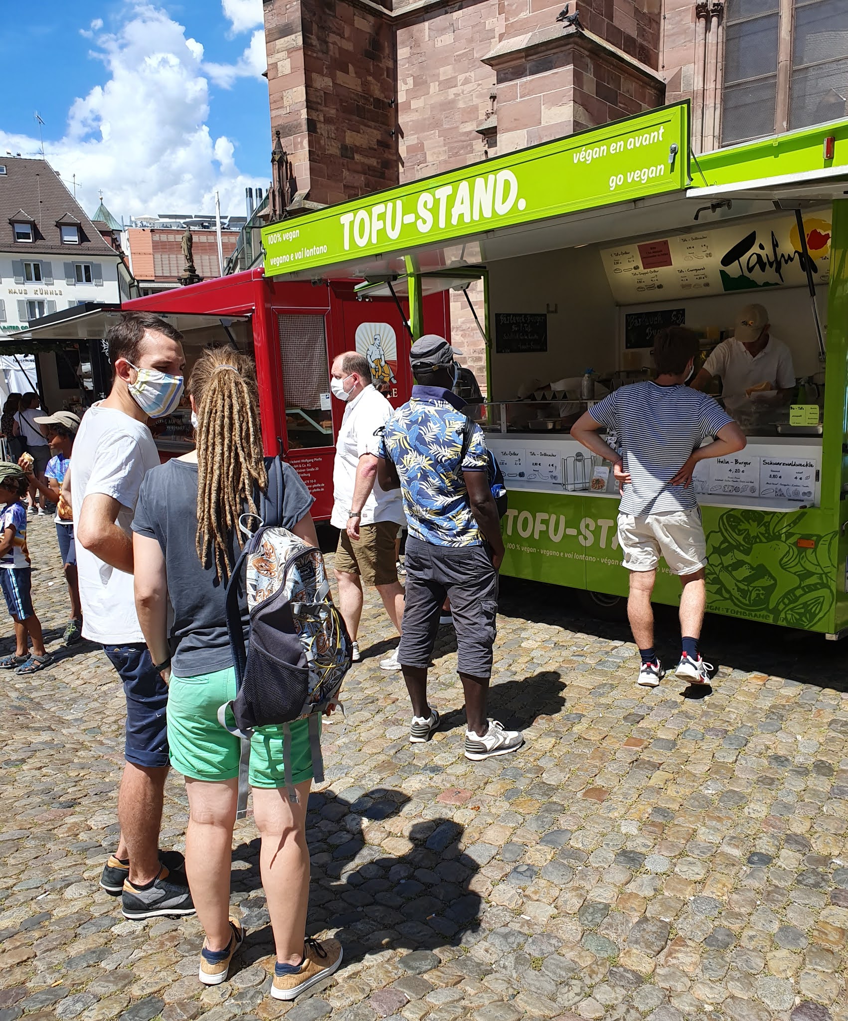 Bevor es um 15 Uhr im direkt an der französischen Grenze gelegenen Bad Bellingen weitergeht, bleiben noch gut zwei Stunden, die wir in der Freiburger Innenstadt investieren. Eine berühmte lange Rote auf dem Münstermarkt und ein Gläschen Wein in der Markthalle dürfen da natürlich nicht fehlen. In Bad Bellingen (5.000 Einwohner) ist aufgrund der dortigen Heilquellen ordentlich Kurtourismus angesagt. Wirklich lebendig macht das den Ort nicht, aber da hier unten im Süden von Süddeutschland schon die ein oder andere Palme am Straßenrand steht, macht das doch richtig Laune. Mit der ist es am provisorischen Eingang des Rheinstadions aber vorbei, denn der Kassier wimmelt alle Zuschauer ab – die noch bis nächste Woche bestehende Grenze von 100 Zuschauern sei schon erreicht. Sowieso seltsam, dass man hier Eintritt verlangt; das kommt in Baden-Württemberg bei vielleicht einem von 100 Testspielen vor. Hier macht man es wohl auch nur deshalb, um die Zuschauerzahl besser regulieren zu können. Ein Blick über seine Schulter zeigt, dass noch nicht einmal 50 Zuschauer anwesend sind, von denen die Hälfte auf dem Balkon und der Terrasse des Stadionrestaurants sitzt, was gar nicht zum Zuschauerbereich zählt. In unaufmerksamen Momenten gehen wir einfach einzeln am Kassierer vorbei und die Sache hat sich. Da fehlt uns wirklich das Verständnis, weil einerseits sind es am Ende wirklich nicht annähernd 100 Zuschauer (den Bereich des Restaurants sogar mit eingerechnet) und andererseits bleiben drei der vier Seiten des Spielfelds komplett frei, wohin sich ja weitere Zuschauer wirklich noch problemlos verteilen könnten – statt Schulter an Schulter auf dem Balkon zu sitzen. Der absolute Knaller dann aber, als eine fünfköpfige Gruppe einheimischer Rentner in der 10. Spielminute einfach von einem Feldweg kommend das Flatterband zur Seite schiebt und sich an den Spielfeldrand stellt. Rein zufällig vorbeigekommen, die hatten eigentlich gar nicht vor, zu dem Spiel zu gehen. Ein Ordner sieht das und geht auf die Rentner zu, doch anstatt sie wieder nach draußen zu bitten, steckt er ihnen kostenlos Eintrittskarten zu und sagt, dass ja noch welche da wären. Klar, aber wer schon vor einer halben Stunde da war, aber halt nicht aus Bad Bellingen kommt, muss wieder gehen. Nicht falsch verstehen: Es geht nicht darum, dass die Renter wieder rausgeworfen werden sollen, aber es wäre ja einfach noch genug Platz da für alle – für die Rentner und für auswärtige Besucher. Ist leider alles ziemlich verrückt in diesen Corona-Zeiten; entweder die Vereine interessiert es überhaupt nicht oder sie übertreiben völlig. Einen gesunden Mittelweg geht kaum jemand.