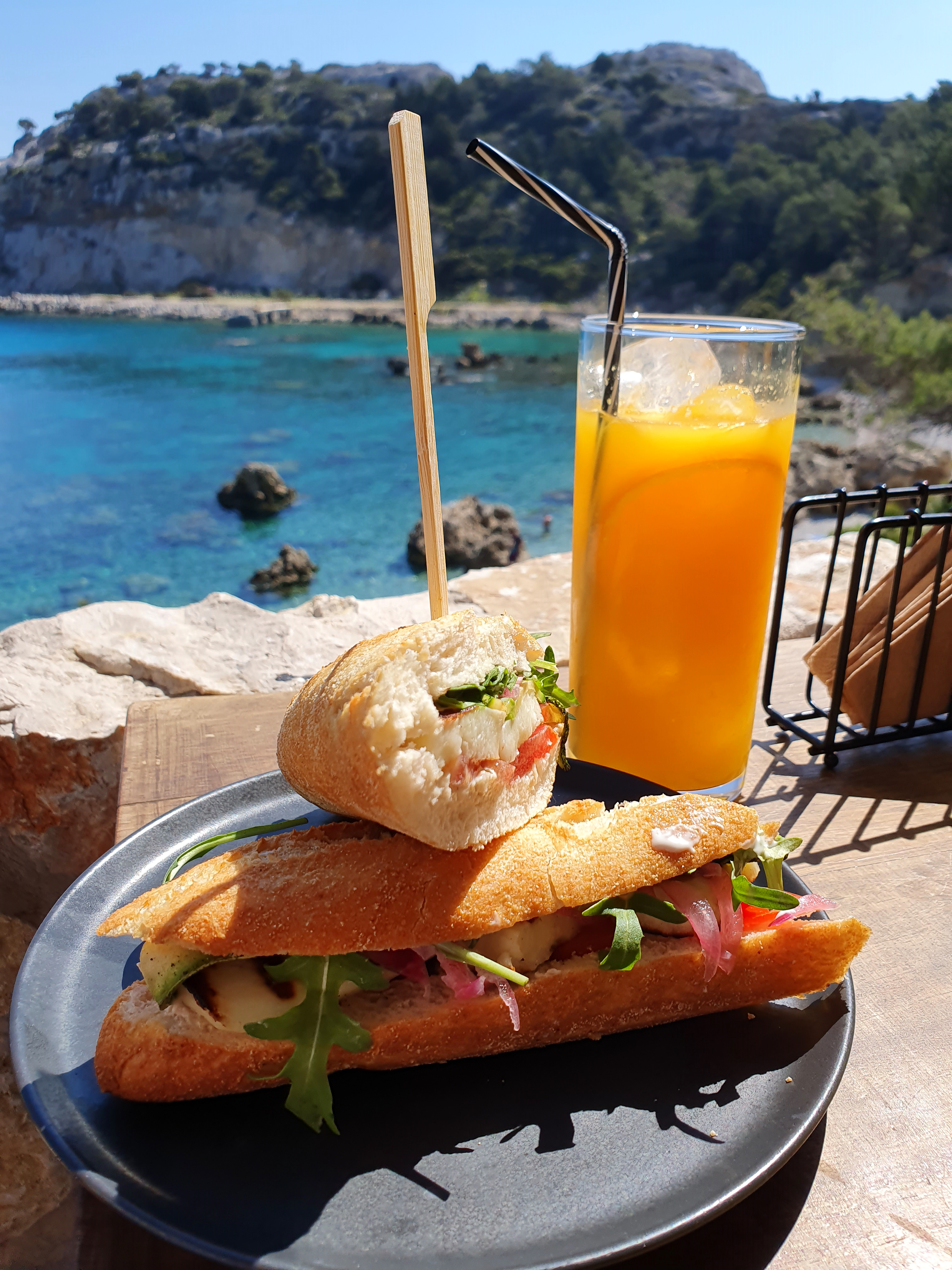 Die 70-minütige Verspätung bei Diagoras kostete gestern den geplanten Doppler mit Ialysos. Heute allerdings dürfte einem Doppler nichts im Wege stehe. Bevor aber der Fußball auf dem Programm steht, geht es früh aus den Federn, denn wir haben uns nicht weniger als vier Strände für den heutigen Tag vorgenommen. Nicht unbedingt zum Baden, sondern um einfach die Natur zu genießen – und um zu schauen, ob die Strände von Rhodos zu Recht ihren guten Ruf genießen. Wir fahren also von Rhodos-Stadt die Ostküste hinunter und beginnen damit zwangsläufig in Kallithea. Die dortigen Quellen sind eines der touristischen Highlights der Insel, kosten jedoch Eintritt. Zwar nicht viel, aber da wir nur den Vormittag Zeit für unser gesamtes Programm haben, schenken wir uns die. Unser Ziel ist dagegen der Tassos Beach, der sich nur eine Bucht weiter befindet. Wir sind um diese frühe Uhrzeit dort die einzigen Menschen und haben den gesamten Strand für uns alleine. Herrlich. Sand gibt es am Tassos Beach nicht, sondern er besticht durch seine flachen Felsformationen, auf denen blaue Sonnenliegen stehen. Die Felsformationen bilden sozusagen große Pfützen, in denen sich das Meerwasser auch viel besser aufwärmt. Ideal für Familien mit kleinen Kindern. Dass auch noch eine herrliche Taverne am Strand steht, macht den Tassos Beach zu einem idealen Ausflugsziel. Wir ziehen weiter nach Faliraki, was uns wie erwartet nicht abholt. Faliraki ist der Massentourismus-Ort auf Rhodos, in dem Hotelbunker an Hotelbunker steht. Zwar gibt es einen sehr langen und breiten Sandstrand, weshalb sich hier ja auch der Massentourismus angesiedelt hat, aber griechischen Charme oder Besonderheiten der Natur sucht man vergeblich. Das bekommen wir dafür beim dritten Stopp doppelt und dreifach geboten: Anthony Quinn Bay – die vielleicht schönste Bucht auf Rhodos. Ihren Namen verdankt sie dem Kriegsfilm „Die Kanonen von Navarone“ mit Anthony Quinn, der hier gedreht wurde. Quinn gefiel die Bucht so sehr, dass er sie danach kaufte. Inzwischen gehört sie aber wieder dem Staat. Besonders genial ist die Bar oberhalb der Anthony Quinn Bay, die zwar nicht spottbillig ist, an so einem Spot aber auch deutlich teurer sein könnte. Von ihr hat man einen traumhaften Blick auf das türkisblaue Wasser und die wunderschöne Bucht. Ein Hauch von Karibik. Unser vierter Strand ist der Tsambika Beach. Er liegt unterhalb des gleichnamigen Klosters, das wir in den kommenden Tagen auch noch erklimmen werden, und ist bekannt für den Felsen, auf dem eine Griechenland-Fahne aufgemalt ist. Ein relaxter, unkomplizierter Sandstrand. Und hier gilt, was überall auf Rhodos gilt: Keine Parkgebühren und man kann mit dem Auto direkt bis an den Strand fahren. Da sind die Griechen ja generell herrlich entspannt. Ich schenke mir den Tsambika Beach aber vorerst, setze nur die Mädels ab und fahre alleine weiter hinauf in das Dörfchen Archangelos, das noch völlig unberührt vom Tourismus ist. Und mitten im Ort steht ein richtig geil abgefucktes Stadion. Zu sehen gibt es dort heute das Viertelfinale im Regionalpokal der Dodekanes-Inseln. Zu Gast ist Anagennisis Asfendiou von der Insel Kos und da die Gäste mit der Fähre an- und wieder abreisen müssen, wird bereits um 12.30 Uhr angepfiffen – an einem normalen Werktag. Pünktlich wird aber wieder nicht angepfiffen, dieses Mal beträgt die Verspätung aber „nur“ 20 Minuten. Grund ist, dass kein Arzt da ist und irgendwie fehlt auch noch die Polizei, ohne die der Schiedsrichter erst nicht anpfeifen will. Dabei gehört Aris Archangelos zu den Vereinen auf Rhodos, die keine Fanszene haben, und auch die Gäste haben nichts mitgebracht. Anwesend sind eigentlich nur ein paar Opas, die dafür aber mächtig on fire. Reichlich Gepöbel und sogar fliegende Gegenstände fehlen somit auch hier nicht. Obendrauf gibt es Souvlaki vom Grill und kühles Dosenbier, so dass ich kein Stück neidisch bin auf die am Strand liegenden Mädels. Nach dem Spiel geselle ich mich dennoch unter den Sonnenschirm am Tsambika Beach, schließlich bleiben noch zwei Stunden Zeit bis zum Anpfiff des zweiten Spiels des Tages in Rhodos-Stadt.
