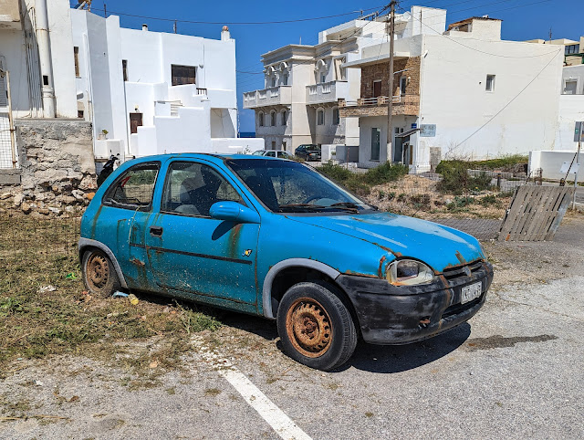 Nach zuvor fünf Tagen gänzlich ohne Fußball geht es nun Schlag auf Schlag. Um Mitternacht wieder auf Naxos angelegt, nur zehn Stunden später rollt schon der Ball im Stadion von Naxos-Stadt. In ihm spielen gleich fünf verschiedene Vereine und es gibt auch noch ein weiteres Stadion auf der Insel, woran man gut erkennen kann, dass Naxos nicht ganz so verschlafen ist wie Paros. Interessant ist, dass es bei Pannaxiakos mit dem Gate 1 eine Fangruppe gibt, die – wenn es darauf ankommt – 50 Leute mobilisieren kann. Das zumindest ergibt die Recherche im Internet. In Naxos-Stadt deutet allerdings nichts darauf hin. Vereinzelt sieht man Schmierereien vom lokalen Ableger von Gate 13 von Panathinaikos, vor allem aber ist das Gate 7 von Olympiakos Piräus präsent. Das wundert nicht, denn Olympiakos Piräus hat generell den Ruf, der dominierende Verein auf den griechischen Inseln zu sein. Kein einziges Mal habe ich in all den Tagen etwas vom Gate 1 von Pannaxiakos in Naxos-Stadt gesehen. Wir sehen an diesem Sonntagvormittag die B-Jugend von Pannaxiakos (B-Jugend bzw. K16 ist auf den dünn besiedelten Kykladen der älteste Fußballnachwuchs) und da geht es natürlich rein um das Stadion. Ich hätte gerne die Herren gesehen, aber da der Spielplan ohne dazugehöriges Datum veröffentlicht wird und man sich auch nicht ausrechnen kann, wer an welchem Wochenende ein Heimspiel hat, da nicht an jedem Wochenende gespielt wird, ist das wirklich ein Lotteriespiel. Auch Pannaxiakos hatte ich im Vorfeld kontaktiert, aber der Verein konnte mir nicht weiterhelfen. Etwa 20 weitere Zuschauer sind ebenfalls an diesem Vormittag dabei, es wird also eine sehr unaufgeregte Veranstaltung. Einen Meerblick gibt es dieses Mal nicht, dafür die Aussicht auf das bergige Inselinnere von Naxos. Richtig sympathische Anlage in der sicherlich schmuddeligsten Ecke von Naxos-Stadt, aber genau so soll es in Griechenland ja sein. Damit endet auch unser letzter voller Tag auf der Insel. Am Montag geht es weiter nach Mykonos.