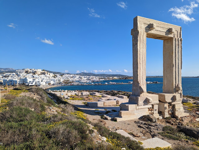 Immer, wenn ich in Athen bin, zieht es mich zum Hafen von Piräus, um dort wehmütig auf die Schiffe zu schauen, die zu den griechischen Inseln auslaufen. Dieses Mal ist es endlich so weit und ich werde (mit Freundin und Tochter) selbst an Bord eines solchen Schiffes sein. Zunächst geht es aber erst einmal mit dem Shuttlebus vom Mailänder Hauptbahnhof zum Flughafen Bergamo, der nachts wohl die größte Jugendherberge Europas ist. Überall liegen Leute auf dem Boden und man hat wirklich Mühe, irgendwo dazwischen selbst ein Plätzchen zu finden – in diesem Fall sogar für drei Leute. Pünktlich um 6.30 Uhr startet der Ryanair-Flieger nach Athen und genau wie im vergangenen Jahr, als es von Budapest nach Rhodos ging, stelle ich verblüffend fest, dass die Flugpreise über Ostern zwar in Deutschland explodieren, im Ausland aber stellenweise richtig human bleiben. So bekommen wir diesen Flug ab Bergamo für geschmeidige 25 Euro pro Person. Angekommen in Athen gibt’s wie üblich zunächst einen Souvlaki-Teller am Omoniaplatz, ehe wir mit der Metro zeitig hinaus zum Hafen von Piräus fahren. Man hätte zwar noch das Heimspiel von Ethnikos Piräus einbauen können, allerdings wären wir dann im günstigsten Fall erst 20 Minuten vor Abfahrt der Fähre wieder am Hafen und das ist mir – gerade mit Family – dann doch zu heikel. Also gammeln wir bei strömendem Regen in einem Café mit Blick auf die Fähre herum und warten sehnsüchtig darauf, dass endlich der Check-in-Prozess beginnt. Mein großer Traum war immer, mit einer Flasche Retsina auf einem Schiff am Hafen von Piräus zu sitzen und dabei das Lied „Ich bin ein Mädchen von Piräus“ zu hören. Die Damen finden das zwar furchtbar peinlich, aber ich zieh’s trotzdem direkt nach Betreten des Schiffes durch. Und keine Angst, Mädels: Das gleiche Thema werden wir auf Mykonos noch einmal mit den Flippers haben. Rund vier Stunden dauert die Fährfahrt von Piräus nach Naxos (Preis pro Person: 51,50 Euro), quer hindurch durch die griechische Inselwelt, die für mich einfach die europäische Karibik ist. Touristen sind jetzt Anfang April kaum an Bord und die Einheimischen verziehen sich meist unter Deck, wo sich unter anderem auch eine Filiale der griechischen Burgerkette Goody’s befindet. Nach dem Sonnenuntergang erreichen wir die Inselgruppe der Kykladen, legen zunächst auf Paros an und dann schließlich auf Naxos, der mit 389 Quadratkilometern größten Insel der Kykladen. Unsere Unterkunft haben wir nur ein paar Schritte vom Hafen entfernt, was schon sehr gut zeigt, wie die nächsten Tage aufgebaut sind: entspannt. Naxos wird den Hauptteil unserer zehn Tage auf den Kykladen einnehmen und wir haben uns ganz bewusst gegen einen Mietwagen entschieden, obwohl die Insel wunderschöne Ecken zu bieten hat. Nein, wir wollen eine Woche komplett in der gleichnamigen Inselhauptstadt (7.500 Einwohner) verbringen und bei möglichst geringem Tempo den griechischen Lifestyle genießen. Und das erweist sich als gar keine so schlechte Ideen, denn auch Naxos-Stadt hat mehrere schöne Strände, die typischen engen Gassen mit lauter weißen Gebäuden wie man es von Mykonos kennt und reichlich schöne Restaurants in jeder Preisklasse. Mein persönliches Highlight ist das Tempeltor von Naxos, das auch das Wahrzeichen der Insel ist. Es befindet sich auf der winzigen Insel Palatia, die Naxos-Stadt vorgelagert ist und mit seinem Hafen inzwischen über einen Damm verbunden ist (womit Palatia streng genommen nur noch eine Halbinsel ist). Das knapp sechs Meter hohe Tor, das etwa 500 von Christus gebaut wurde, ist der einzig erhaltene Teil eines Apollontempels. Das Tor ist aber gar nicht das eigentliche Highlight, denn der kleine Berg, auf dem es steht, bietet praktisch eine 350-Grad-Sicht auf das offene Meer. Ein Bierchen, ein kleine Flasche des nur auf Naxos erhältlichen Kitros (grüner Likor aus den Blättern des Zedratbaums, von dem es auf Naxos nur 2000 Exemplare gibt, weshalb die Produktion limitiert ist), griechische Musik auf dem Handy abspielen und den Sonnenuntergang anschauen – da ist die Welt für mich perfekt. Jeden Abend schauen wir uns den Sonnenuntergang auf Palatia an, was von unserer Unterkunft nur ein fünfminütiger Fußweg ist, und es ist dabei wirklich interessant zu sehen, wie es jeden Tag ein paar Touristen mehr werden. Das erleben wir auch in Naxos-Stadt selbst. Die Tourismussaison läuft in diesen Tagen erst an und so werden es nicht nur jeden Tag mehr Touristen, sondern jeden Tag wachen auch weitere Shops und Restaurants aus dem Winterschlaf auf. Sehr spannend, das zu beobachten. Selbst in das etwas lieblose archäologische Museum von Naxos-Stadt, in dem in den Vitrinen teilweise Kabel zwischen den antiken Funden herausgucken, kehrt irgendwann Leben ein. Ich muss schon sagen: Ein paar wirklich schöne Tage in Naxos-Stadt, die umso angenehmer werden, sobald man die ersten Leute kennengelernt hat. Meine absolute Empfehlung gibt es für das Restaurant Kozi in der Nähe des Damms, der zur Insel Palatia führt. Hausmannskost zum guten Preis und mega-freundliches Personal!